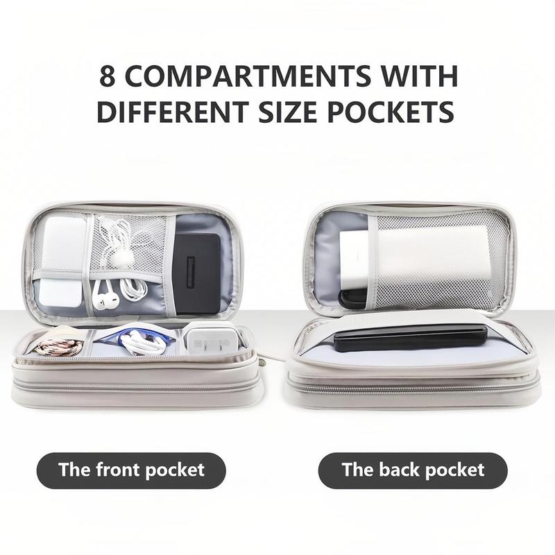 Double Layers Design: The storage bag has 2 layers interior compartment with enough space to take in your cords, cables, USB drive, cellphone, charger, mouse, flash drive, and other accessories.